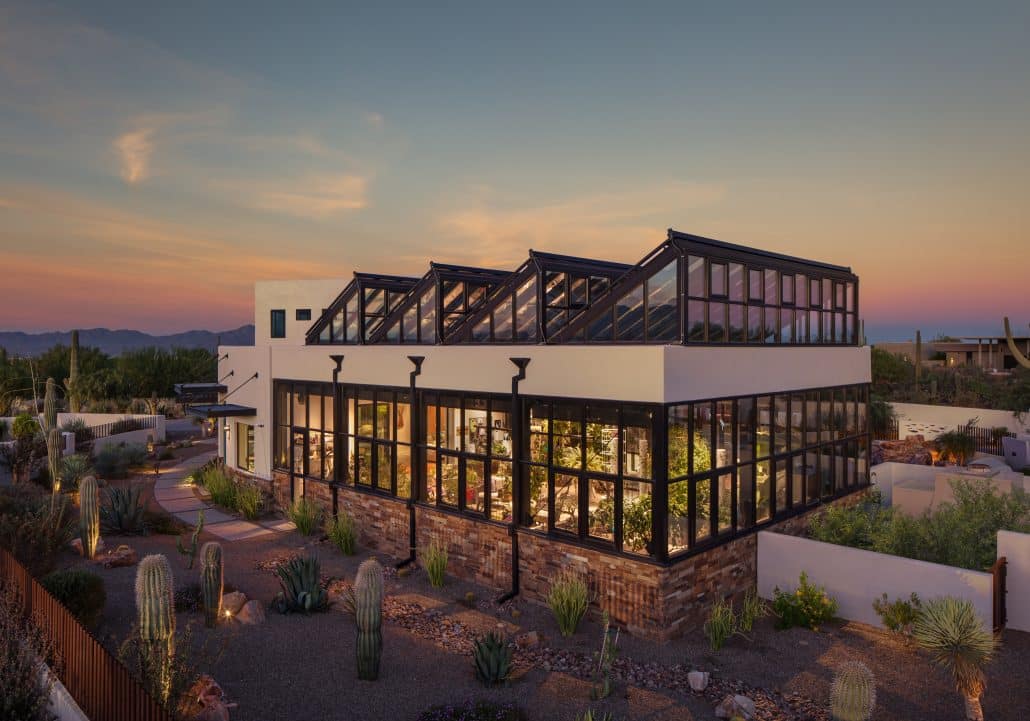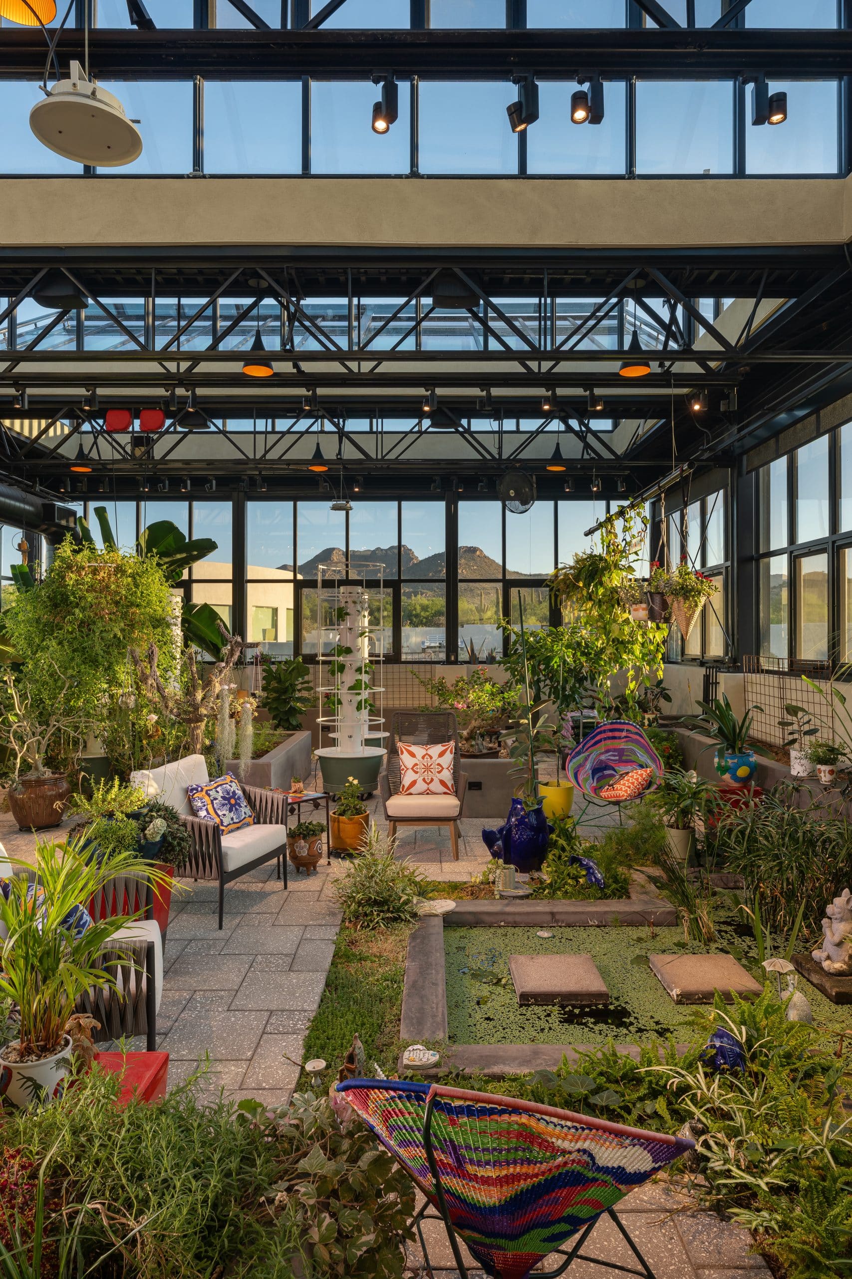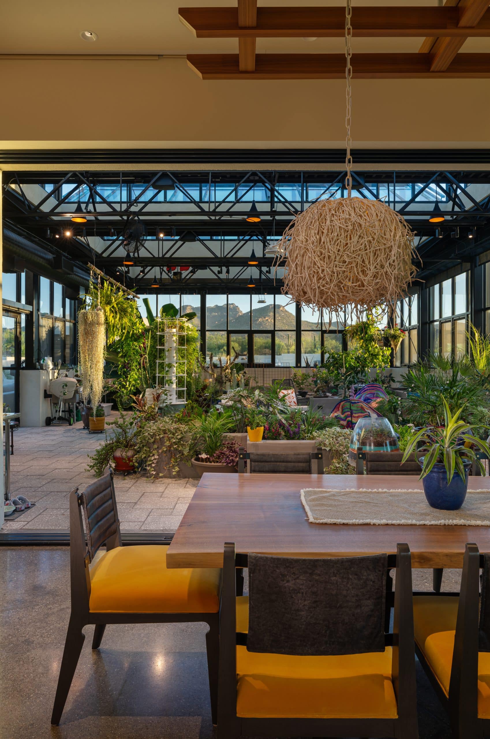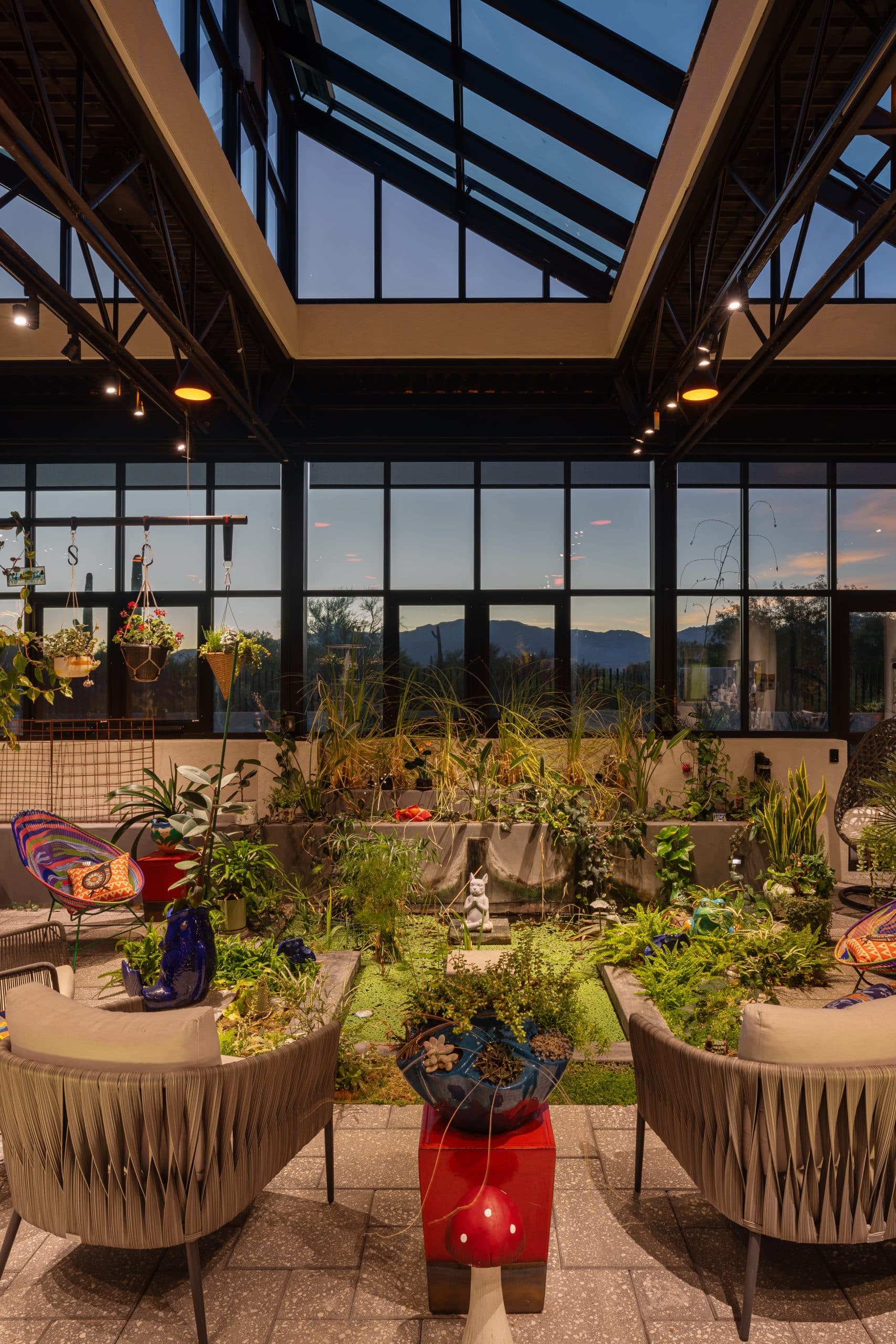 Inside, the conservatory supports a wide range of plant life—from tropicals and perennials to full vegetable gardens and citrus trees. The contrast between the native desert outside and the lush, vibrant plant life inside creates a truly immersive growing experience.