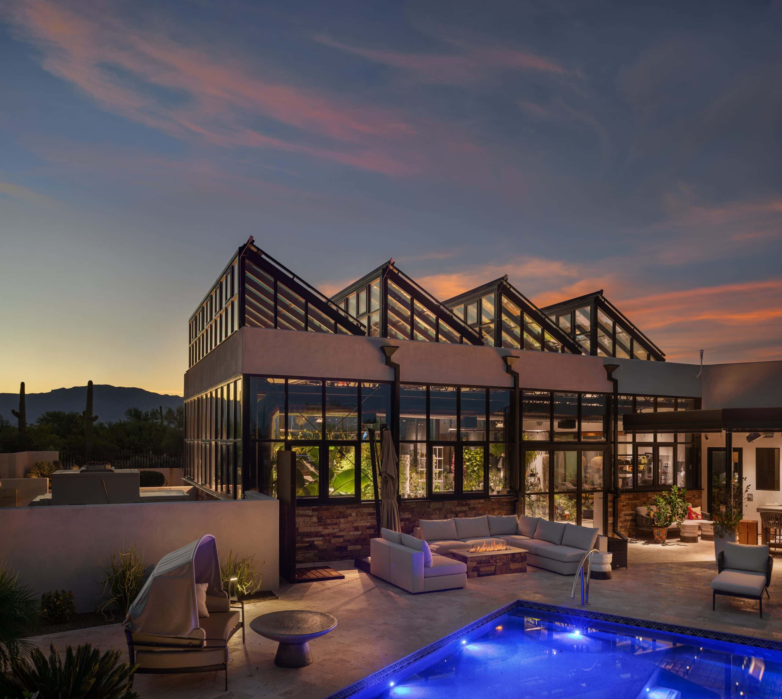 In the high desert of Tucson, Arizona, we designed and built a fully automated greenhouse conservatory capable of thriving year-round. This project was all about balancing advanced growing technology with the challenges of an extreme desert environment—and doing it beautifully.